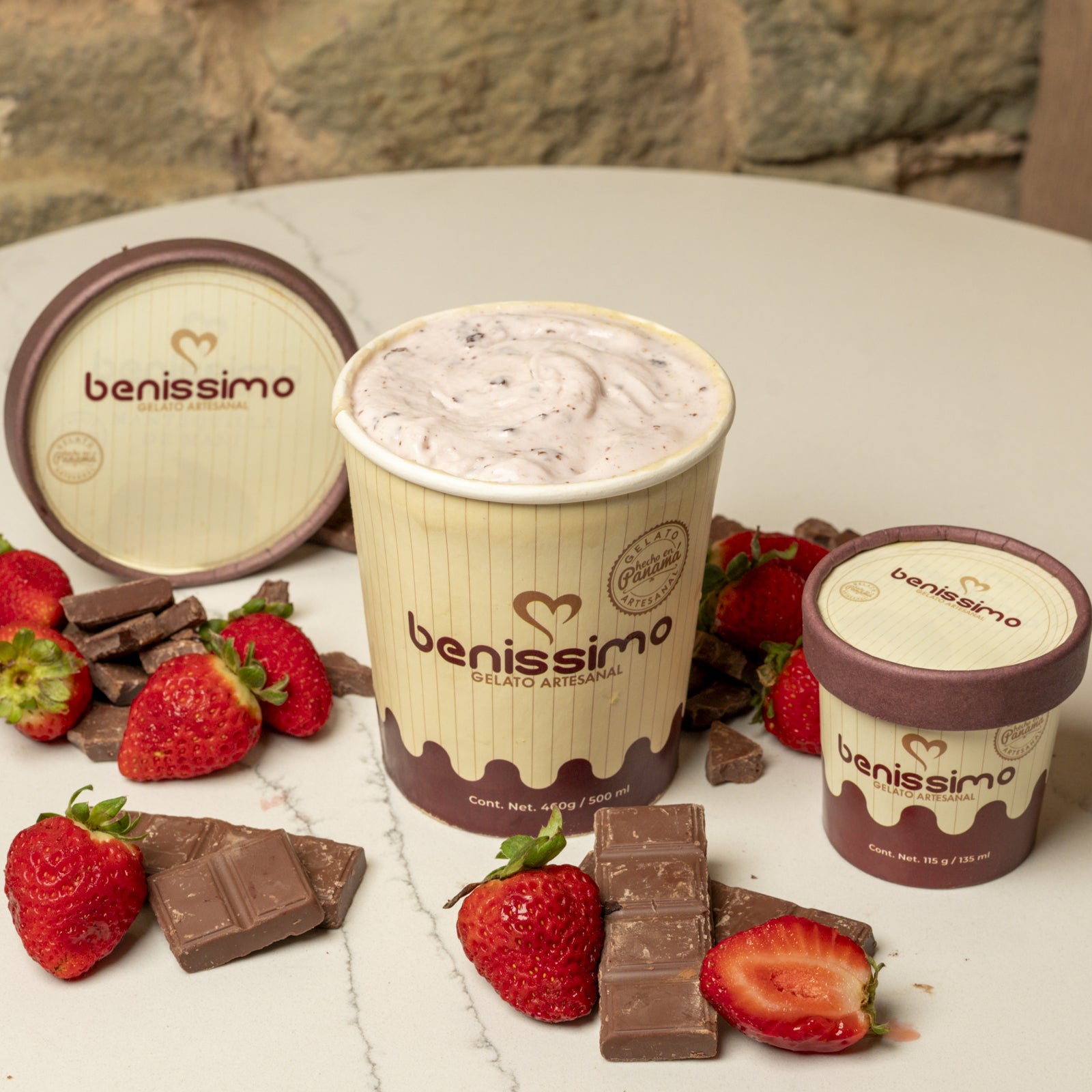 Gelato de Mousse de Fresa con Chocolate Artesanal